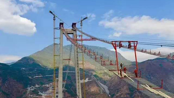 The Jin'an Jinsha River Bridge is currently the world's largest mountain canyon steel truss suspension bridge under c...