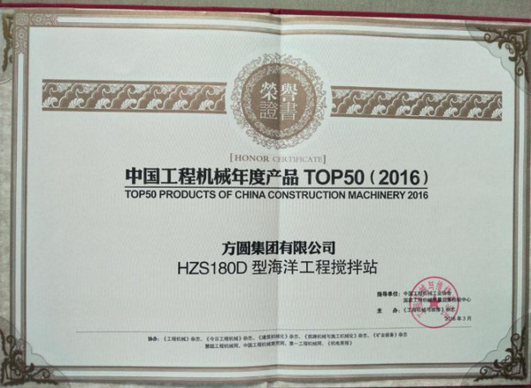The product was awarded the TOP50 of China's Construction Machinery Annual Products (2016)!