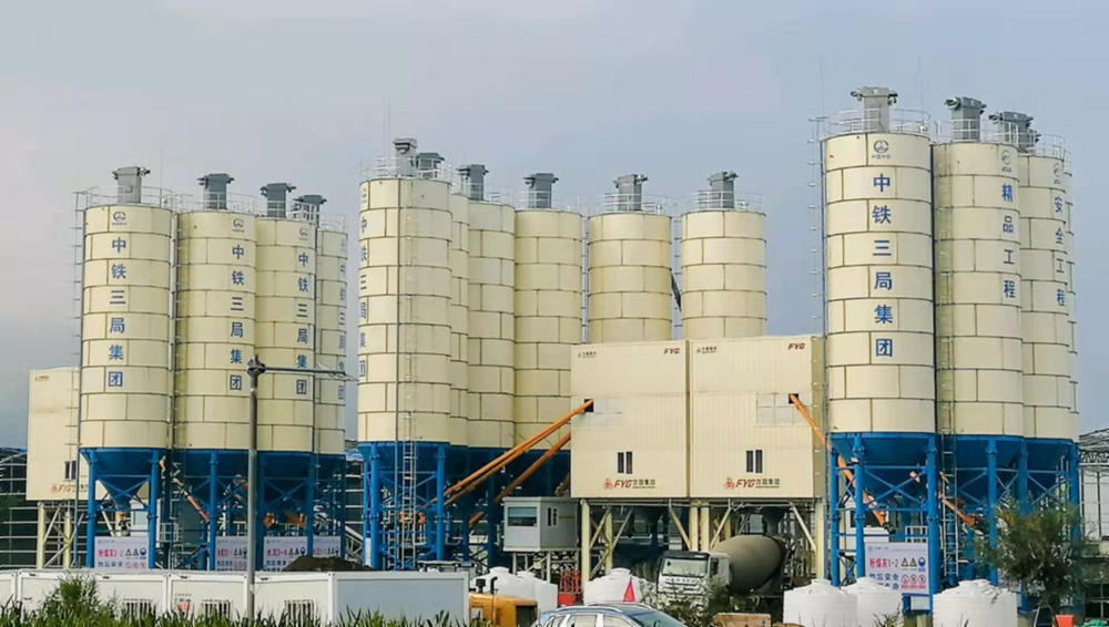 Three sets of HZS180 box type concrete mixing plants from Fangyuan Group are in service for the construction of the Liaoning section of the Shenbai high-speed railway.