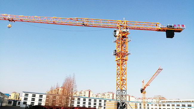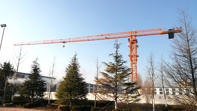 The large-diameter slewing bearing and two sets of symmetrical slewing mechanisms adopt external tooth meshing, torque motors, variable frequency speed regulation, and the tower crane rotates smoothly.