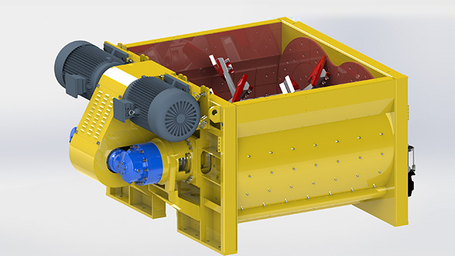 The overall post weld aging treatment of the mixing drum strictly ensures the center distance between the two main mixing shafts and the coaxiality between the large arc plate and the mixing shaft!